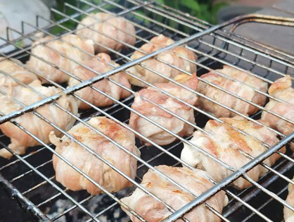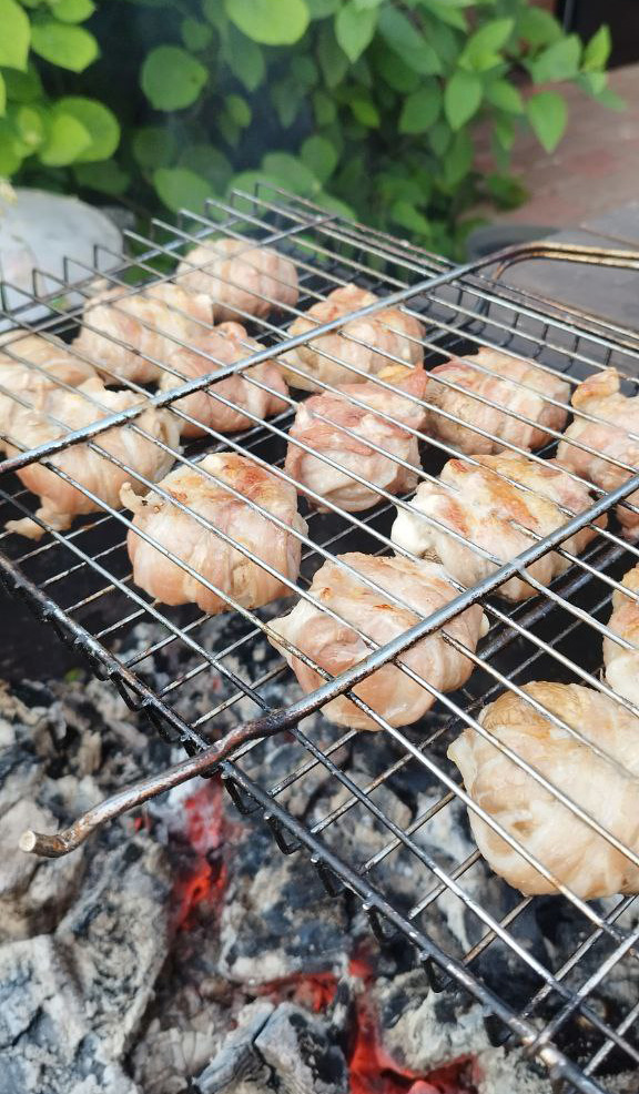 Солим/перчим бекон. Удаляем ножки шампиньонов, маринуем в соевом соусе. Вкладываем в шляпки сыр и заворачиваем грибы в бекон.