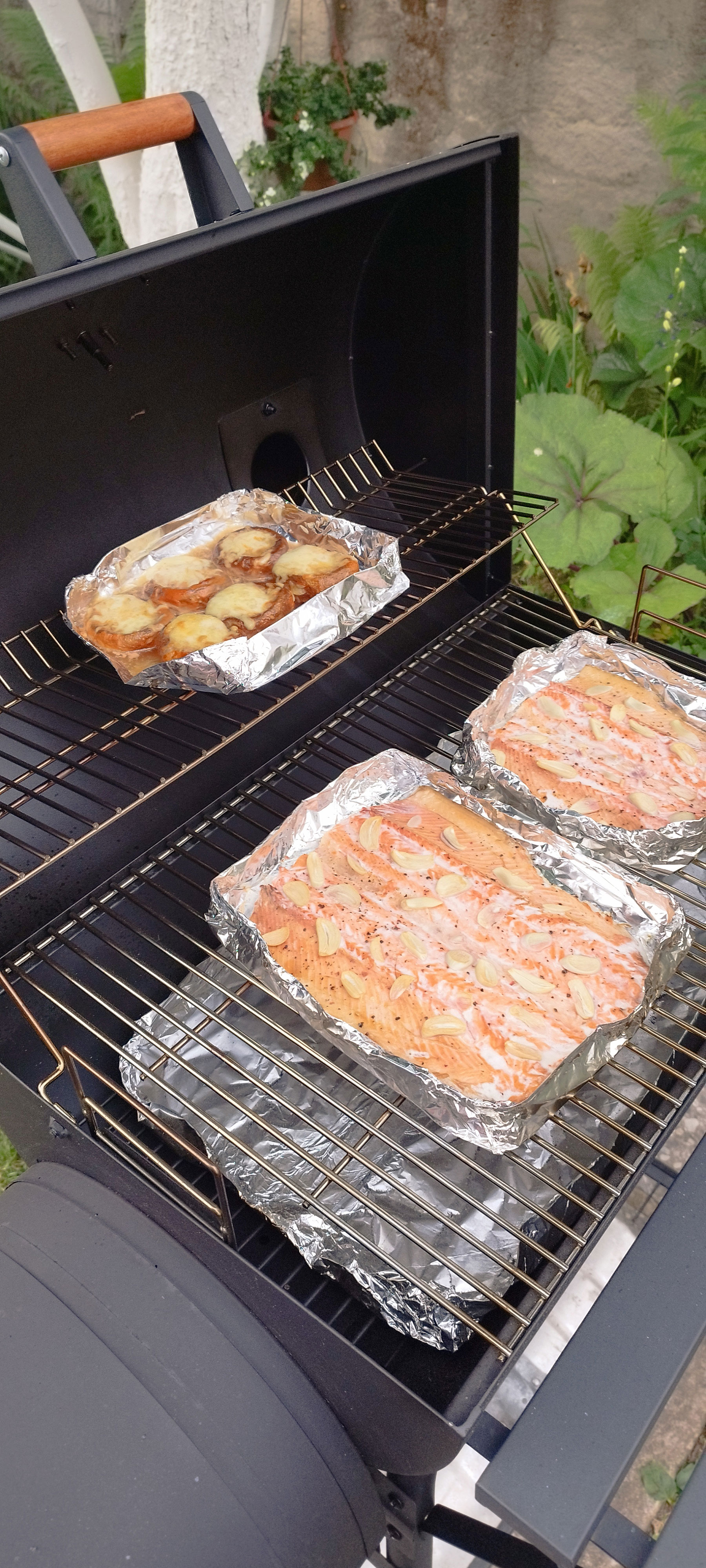 Запекаем 20-30 минут. В первые 10 минут добаляем в топочную щепу (по желанию).